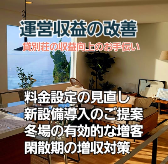 淡路島にて現在稼働中の貸別荘の収益改善をコンサルティングさせていただきます。